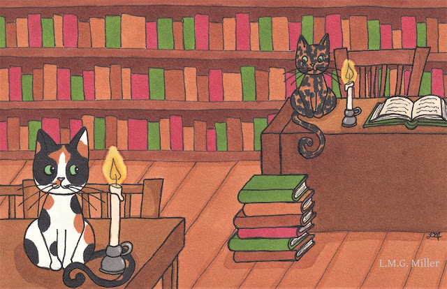 Roughly this same time last year, we shared a series of library doodles. Of course, those library doodles starred not only books but also some library cats. The next new series of doodles we'll be sharing also involves lots of books and cats. First, though, how about one of the library doodles from last year to kick off our bookish kitty doodles?