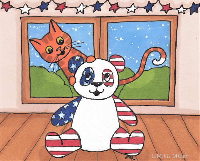I am a big fan of panda bears. They're one of my all-time favorite animals. That said, I took some major liberties with this one. Since I always like to pair my poems not only with the prompts, but also with an illustration of my own, I looked through my doodles I have finished but haven't shared yet. I found one I drew on July 4th but just never shared, and it happens to star a panda. See?